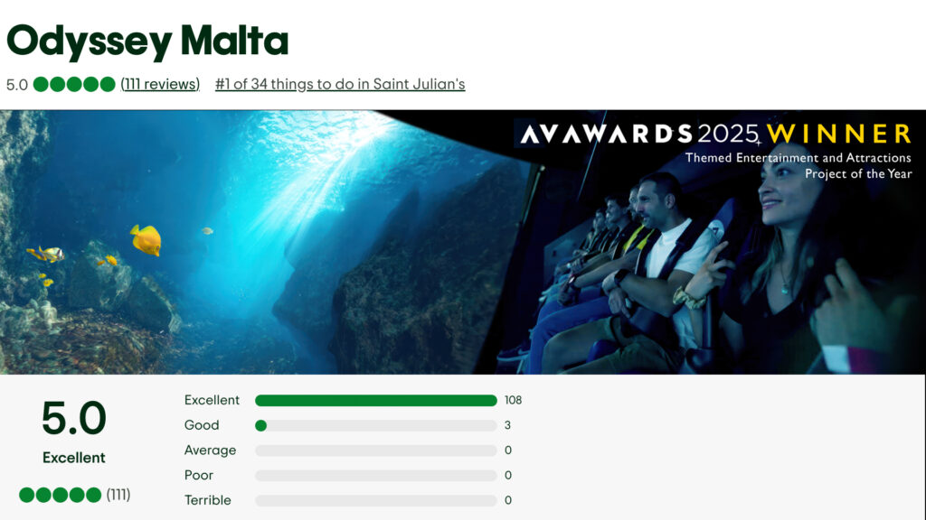 These aren’t just our words; they’re the unanimous 5-star reviews pouring in for Odyssey Malta—Europe’s top-rated Flying Ride attraction. A ground breaking 5D experience by Sarner International and Simtec Systems that redefines what immersive attractions can be, and one we’re extremely proud to have been part of.